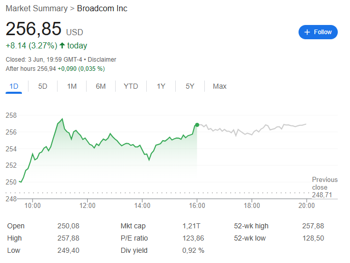 在财报发布前48小时释放“突破性”产品消息,博通股价应声上涨近3.3%,一举突破去年12月的历史高点,市值首次逼近1.2万亿美元。